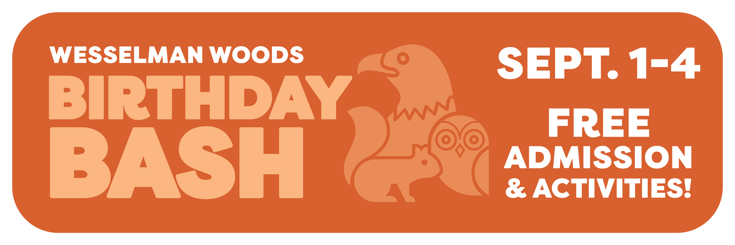 Visit Wesselman Woods during these days for FREE ADMISSION and lots of great activities for you, your friends, and your family!