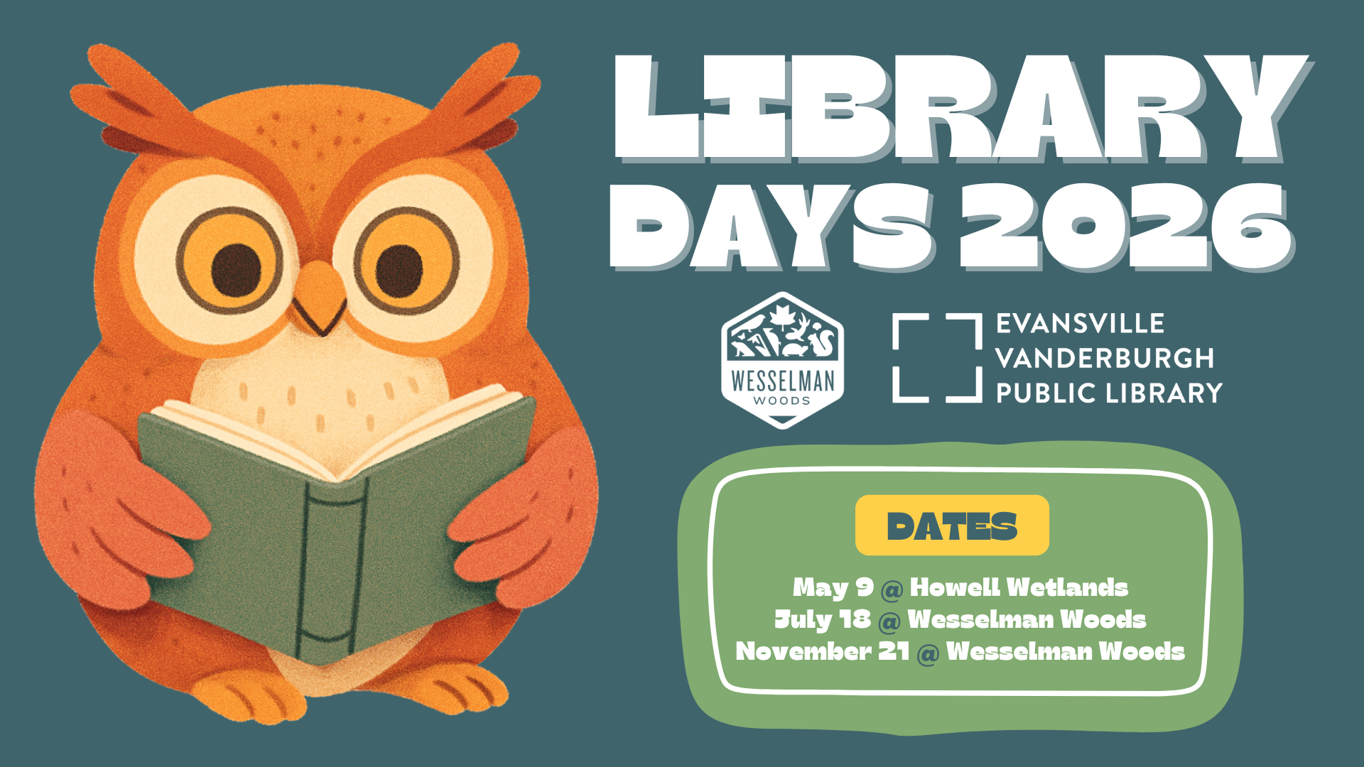 We're continuing the collaboration between the Evansville Vanderburgh Public Library and the Wesselman Woods, where we combine the wonder of literature with the beauty of the great outdoors.